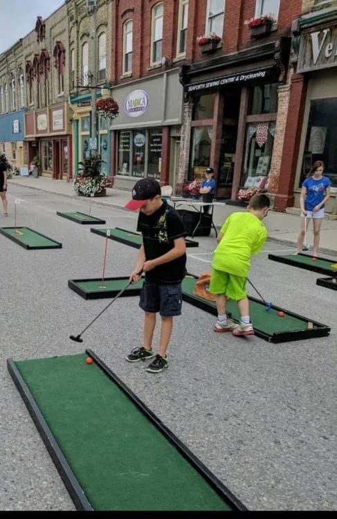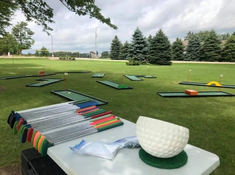 Rent our 9 Hole Mini Putt Golf Course! Complete with 9 separate holes, with different obstacles and ramps, you will imagine yourself playing Augusta while trying this fun, exciting course! Comes with Putters, Golf Balls, Score Cards and 9 holes!