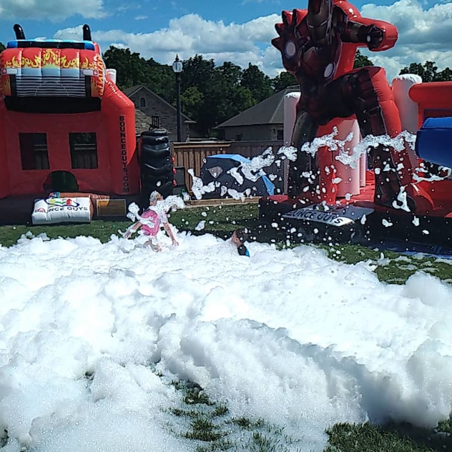 Bounce Guys uses Dr. Party Foam Powder Packs. They are hard water resistant as well as cold water soluble. We add no fragrance, dyes or coloring to our solution. Our foam powder packs are board-certified dermatologist approved.