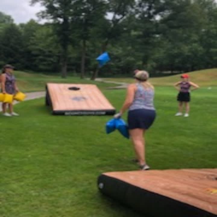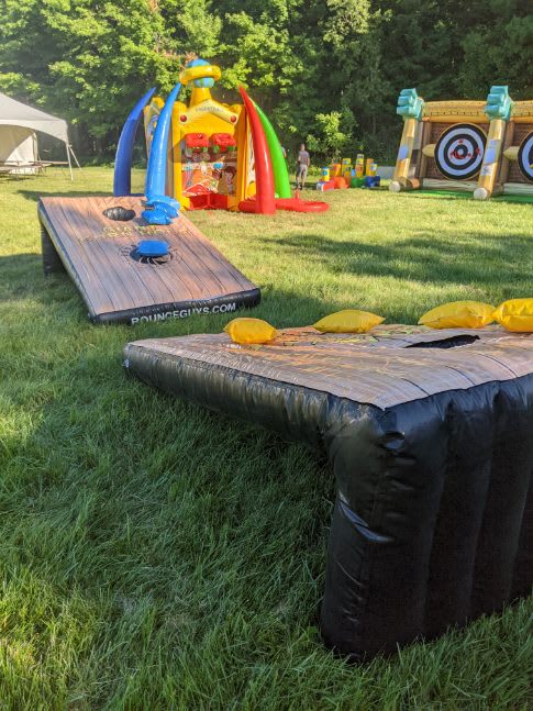 This exciting addition to any party is perfect for adults looking for a little competitive fun. Our giant corn hole game will have your guests laughing and cheering as they aim for the perfect throw.