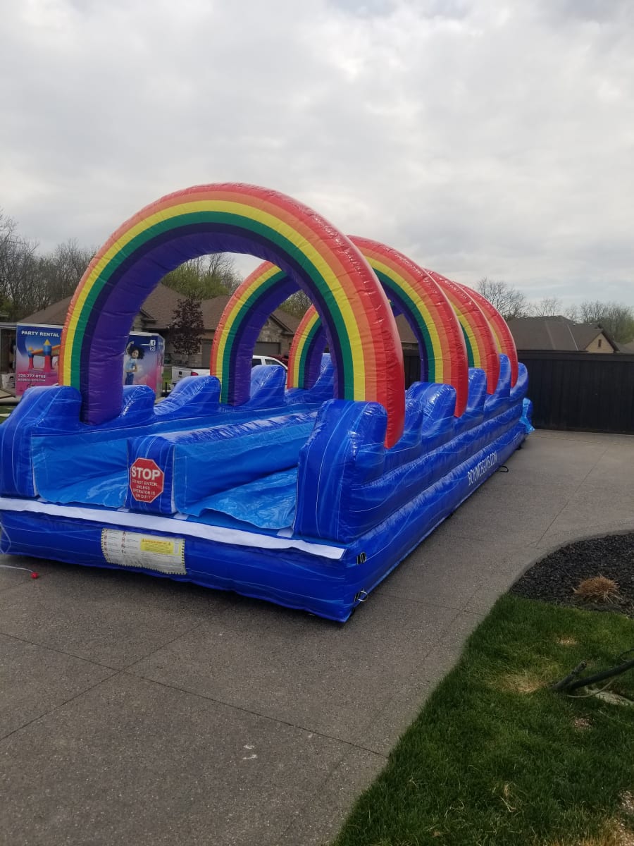 Perfect for teens and adults, our 36-foot slip 'n slide is the ultimate way to beat the heat! The unit comes with a soaker hose to ensure the lanes stay wet and slippery for maximum sliding fun. Run, slide, and splash into the cool water with the Double Lane Rainbow Slip 'n Slide. It's the perfect way for teens and adults to have fun this summer!