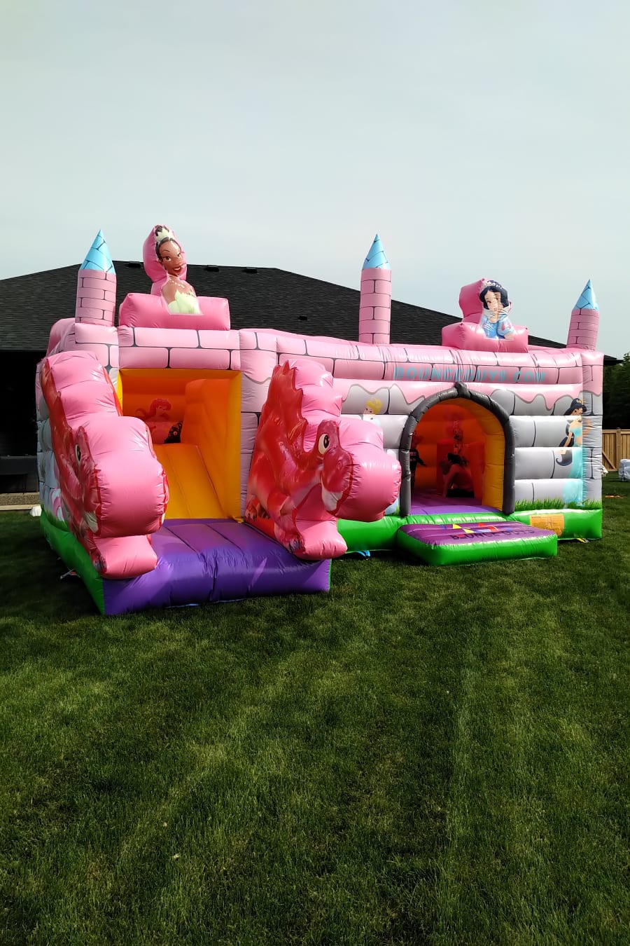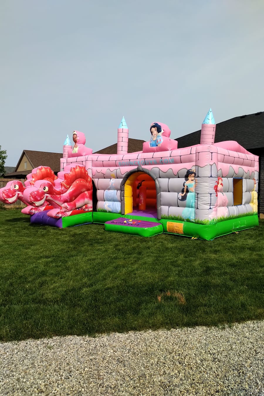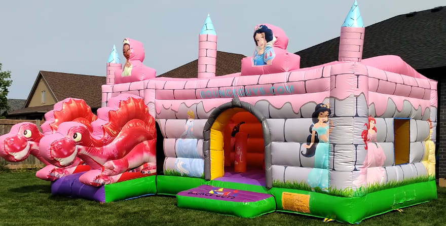 Bring the magic of a fairytale kingdom to your backyard with our latest addition - the Dino Princess Castle Combo! This grand-sized bounce house is perfect for young princesses who want to play and have fun in their own kingdom. It’s an exciting and magical way to spend a day outdoors.